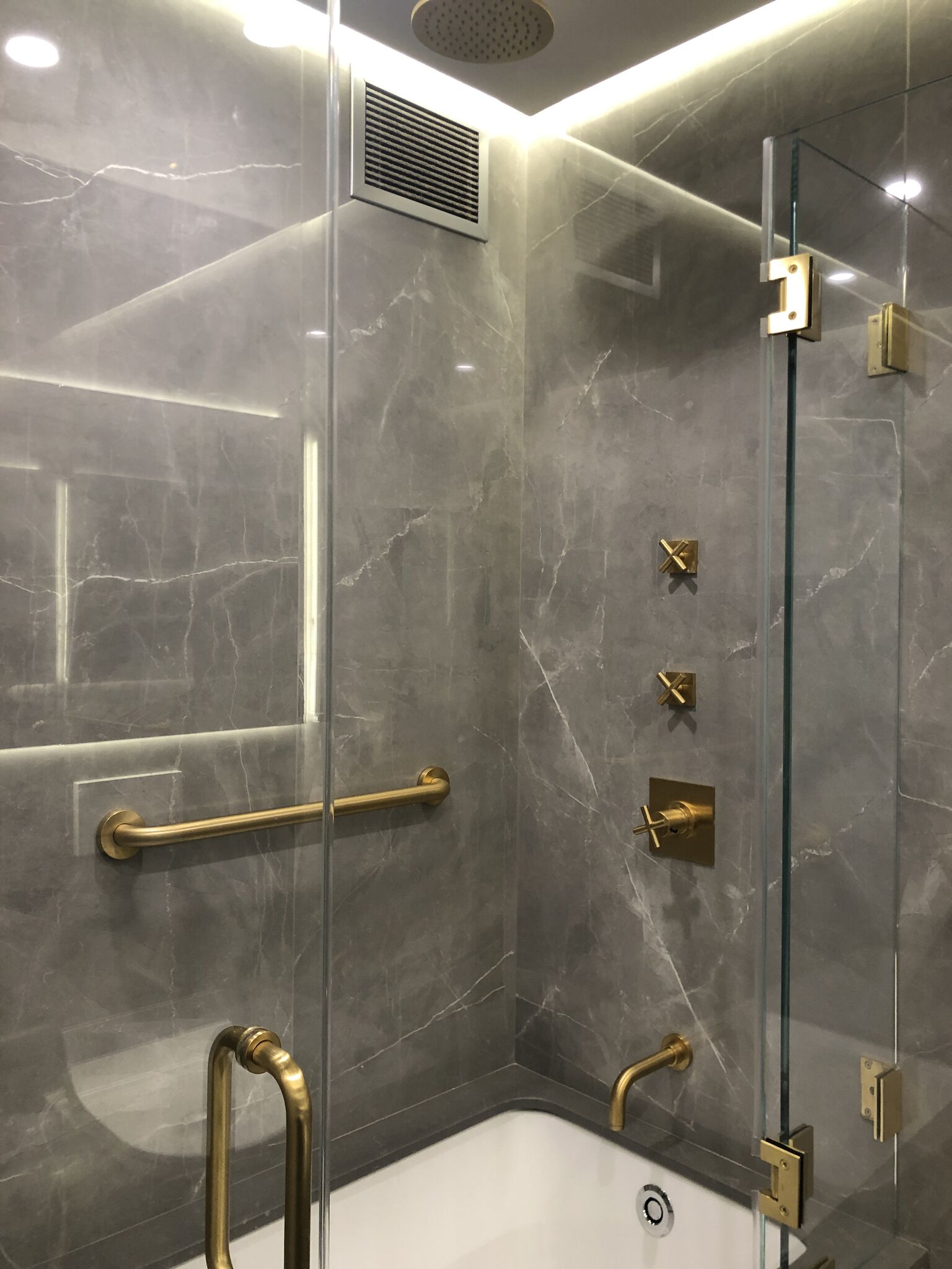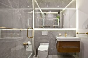 Each bathroom was redesigned to include spacious walk-in showers, freestanding bathtubs, and custom vanities. Natural stone tiles, soft lighting, and elegant fixtures were used to create a sense of tranquility and relaxation. The master bathroom, in particular, was designed with a focus on luxury, featuring a large soaking tub positioned to take advantage of the stunning views.